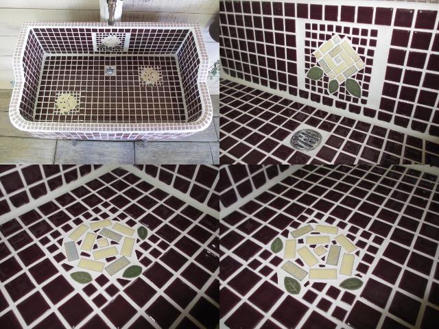 エレガンスなタイルシンク完成 ブログ 2013.05.08 こんにちは。 今日は昨日とうって変わってメチャ暖かいですね~ ちょっと暑いか(笑) 今日は昨日作った、作善堂エレガンスシリーズのタイルシンクをご紹介いたします! このタイルシンクのセールスポイントは、手の込んだ3つのバラです。 これを作るのが大変なんです(笑) 花の大きさ&バランスなどなど・・・ でも完成するといいですね~ さぁ~あと少し! 頑張ろかな~~~~~~