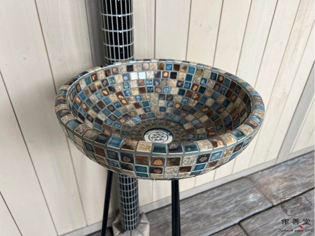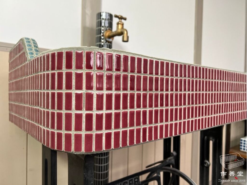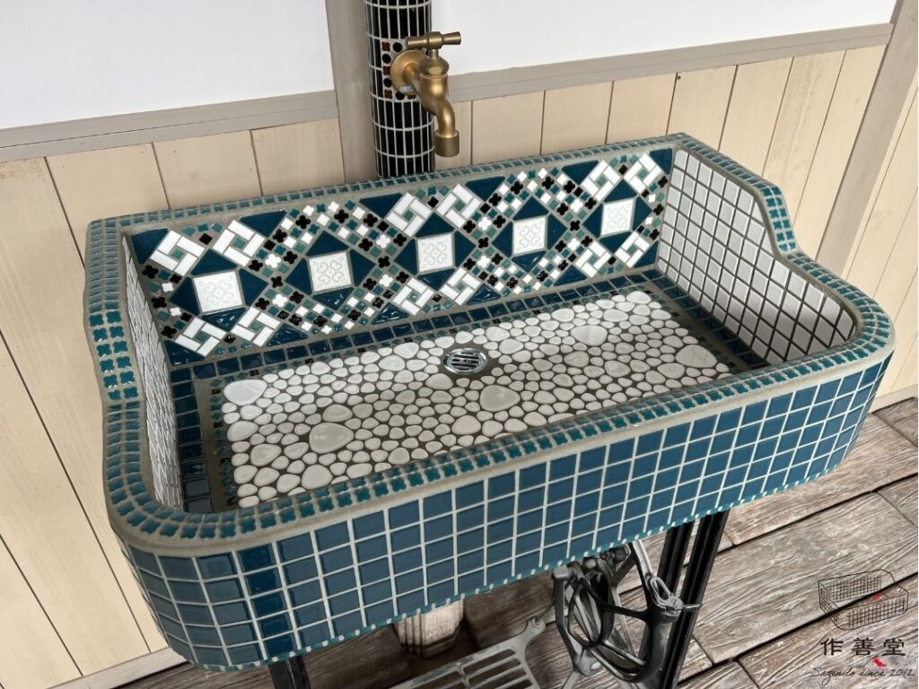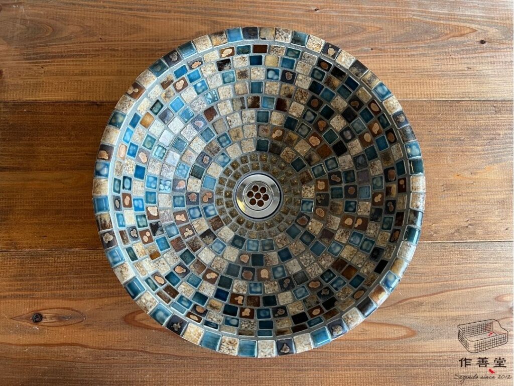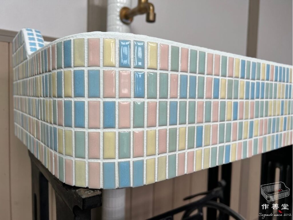 半丁タイルと結晶釉タイルが味わい深い昭和レトロなタイルシンク(Sサイズ)[商品番号:2560]