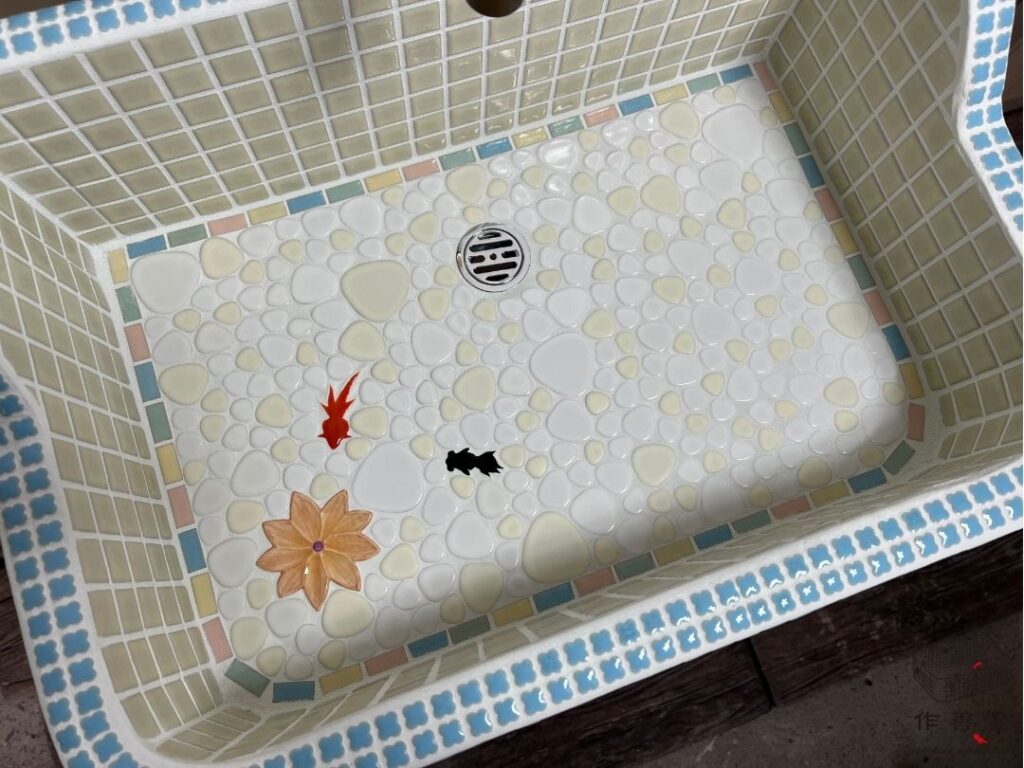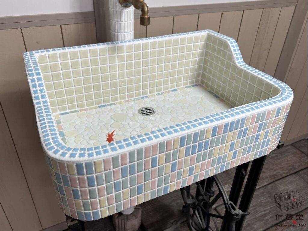 ミックスカラーがかわいい半丁タイルと金魚とお花のシンク(SSサイズ)[商品番号:2561]