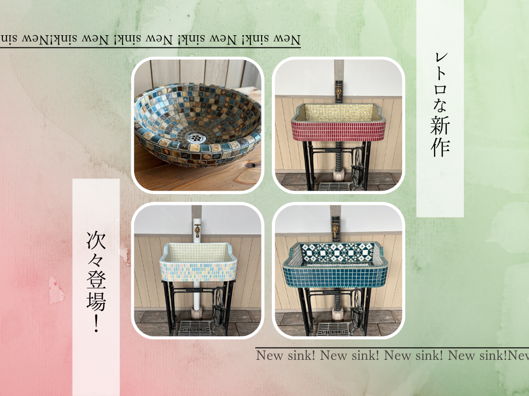 ボウルシンク1台とモルタルシンク3台をご紹介させていただきました!レトロな雰囲気漂うデザインが多い今回の新作でしたが、気になるものはありましたでしょうか?貴重なタイルを使用しているシンクも多くございますので、気になった方はぜひお早めにチェックをいただけたらと思います。