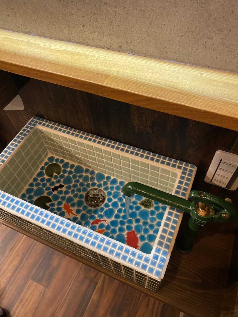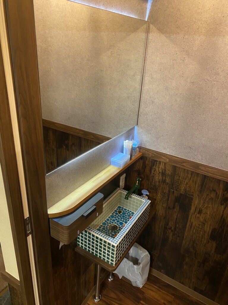 お客様の施工後のお写真をご紹介〈2025.12.31〉 施工例のご紹介 2025.12.31 居酒屋さんのおトイレの手洗いに設置いただきました。 限られたスペースへの設置という事で、小さめサイズのシンクをオーダーいただきましたが、サイズも雰囲気もぴったりとの事で、お喜び頂けまして嬉しい限りです。