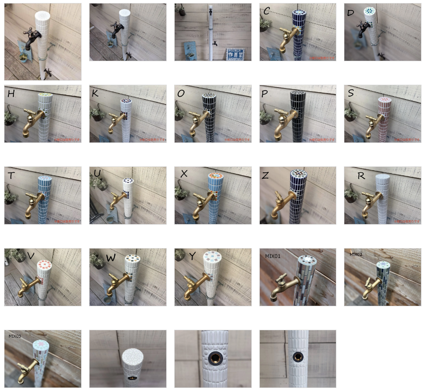 作善堂のタイルシンクや水栓柱はデザインを豊富に揃えております。お客様の家の外壁や、庭の植物に合わせてデザインを選べるので、「我が家らしい」特別な水回りを実現できるかと思います。さらにこだわりたいお客様には水栓柱のオーダーも承っております!