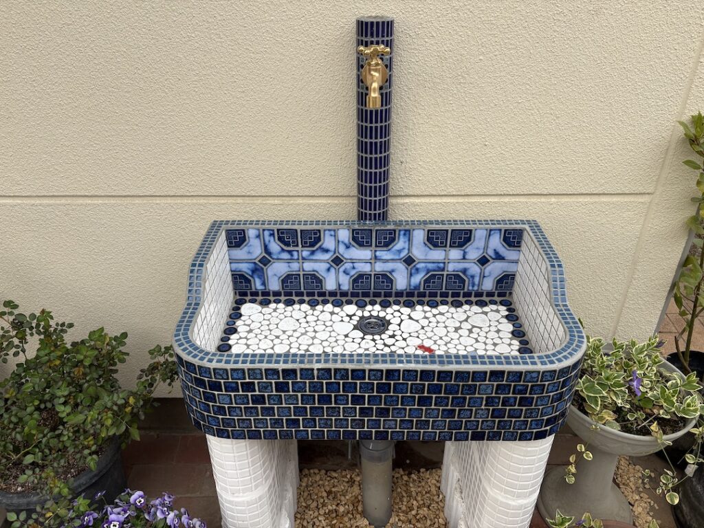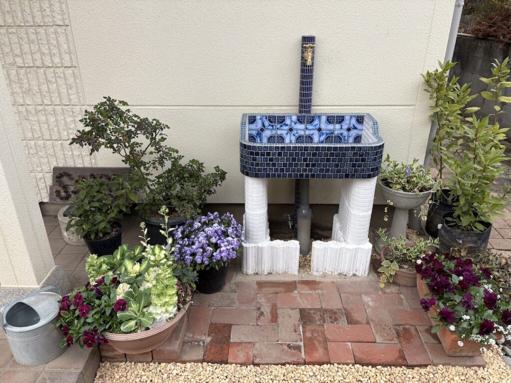玄関横の外流しをおしゃれにしたいという長年の願いが叶いました!
